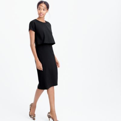 I also like this faux two-piece dress from J. Crew (left, below). ASOS currently has a very similar style (right, below), but perhaps more fitted and with a gold embellishment at the neckline.